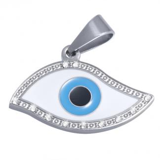 STAINLESS STEEL PENDANT IN EVIL EYE SHAPE WITH 11 CZ IN S/S COLOR WITH BLUE & BLACK PAINT