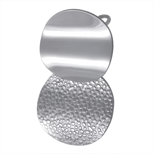 STAINLESS STEEL PENDANT WITH 2 CURVY CIRCLE PIECE ONE POLISH ONE WITH TEXTURE (HAMMERED) ALL IN STEEL COLOR