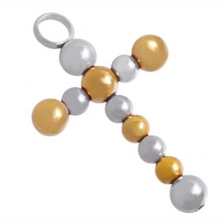 STAINLESS STEEL PENDANT IN CROSS SHAPE (FORMED WITH BEADS) IN IPG TWO TONE
