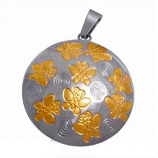 STAINLESS STEEL PENDANT IN CIRCLE SHAPE WITH BUTTERFLY & SPIRAL PATTERN IN IPG COLOR