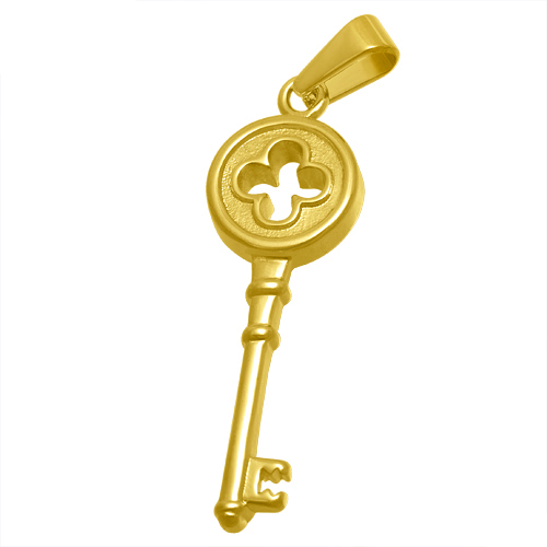 STAINLESS STEEL PENDANT IN KEY SHAPE WITH FLOWER CUT OUT ALL IN IPG COLOR