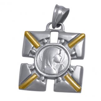 STAINLESS STEEL RELIGIOUS PENDANT IN SQUARE SHAPE WITH VIRGIN MARY IN IPG TWO TONE