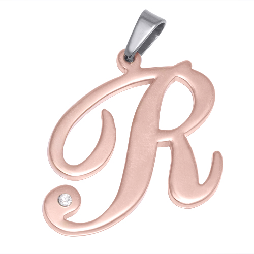 STAINLESS STEEL PENDANT WITH LETTER R WITH 1 CZ IN IP ROSE TWO TONE
