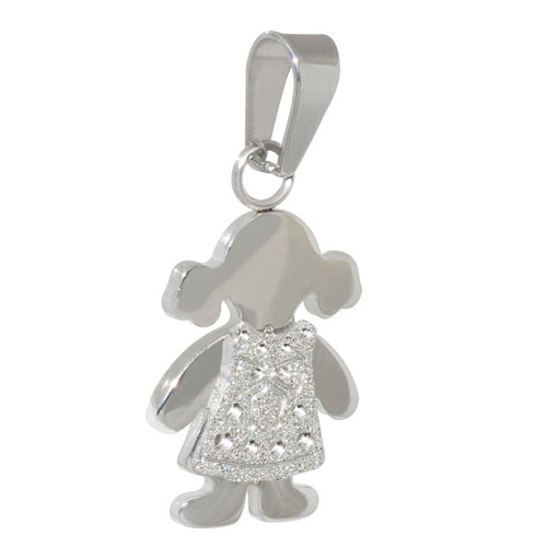 STAINLESS STEEL PENDANT IN GIRL SHAPE WITH SANDBLAST ALL IN STEEL COLOR