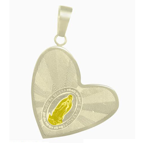 STAINLESS STEEL RELIGIOUS PENDANT IN HEART SHAPE WITH GUADALUPE IN IPG TWO TONE