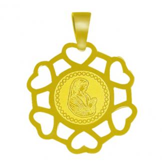 STAINLESS STEEL RELIGIOUS PENDANT WITH VIRGIN MARY AND SIX HEART SHAPE AT THE EDGE ALL IN IPG COLOUR