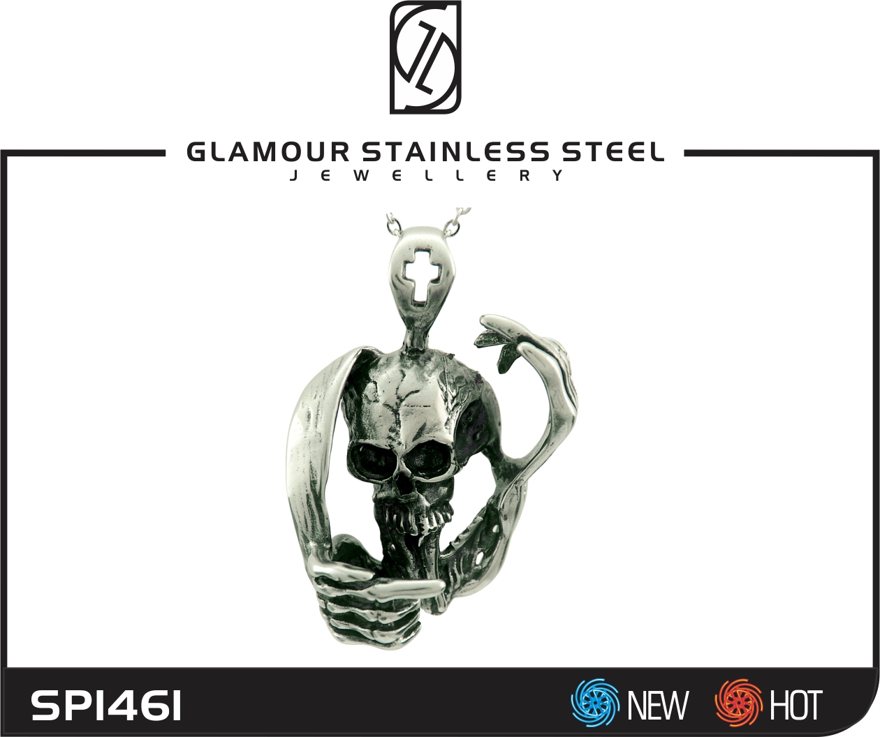 STAINLESS STEEL PENDANT WITH SKULL IN S/S COLOUR