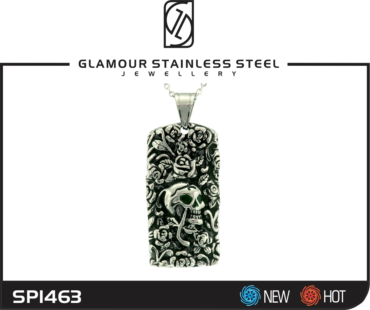 STAINLESS STEEL PENDANT WITH SKULL IN S/S COLOUR
