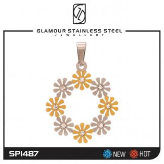 STAINLESS STEEL PENDANT IN FLOWER SHAPE WITH CZ IN IPG TWO TONE