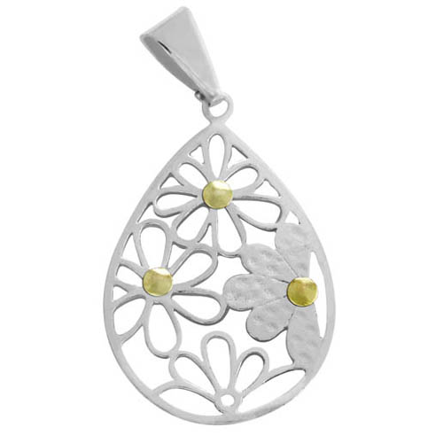 STAINLESS STEEL PENDANT IN DROP SHAPE WITH FLOWER PATTERN IN IPG TWO TONES