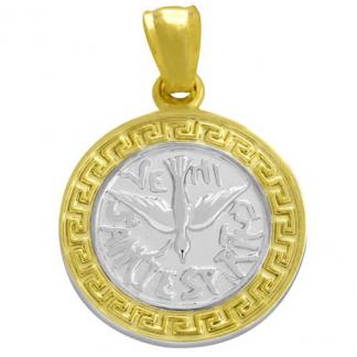 STAINLESS STEEL PENDANT IN CIRCLE SHAPE WITH BIRD PATTERN IN IPG TWO TONES