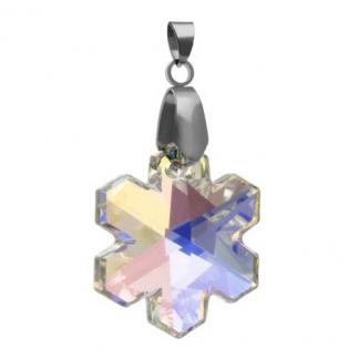 STAINLESS STEEL PENDANT ALL IN S/S COLOR WITH SWAROVSKI CRYSTAL IN WHITE COLOR IN SNOW FLOWER SHAPE