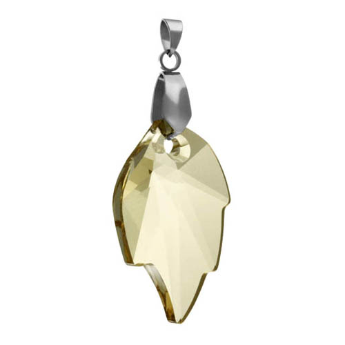 STAINLESS STEEL PENDANT ALL IN S/S COLOR WITH SWAROVSKI CRYSTAL IN ORANGE COLOR IN LEAF SHAPE