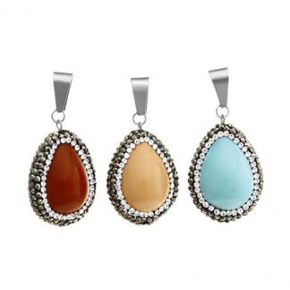 STAINLESS STEEL PENDANT DROP SHAPE WITH COLORFUL STONE WITH BLACK & WHITE CZ IN S/S COLOR