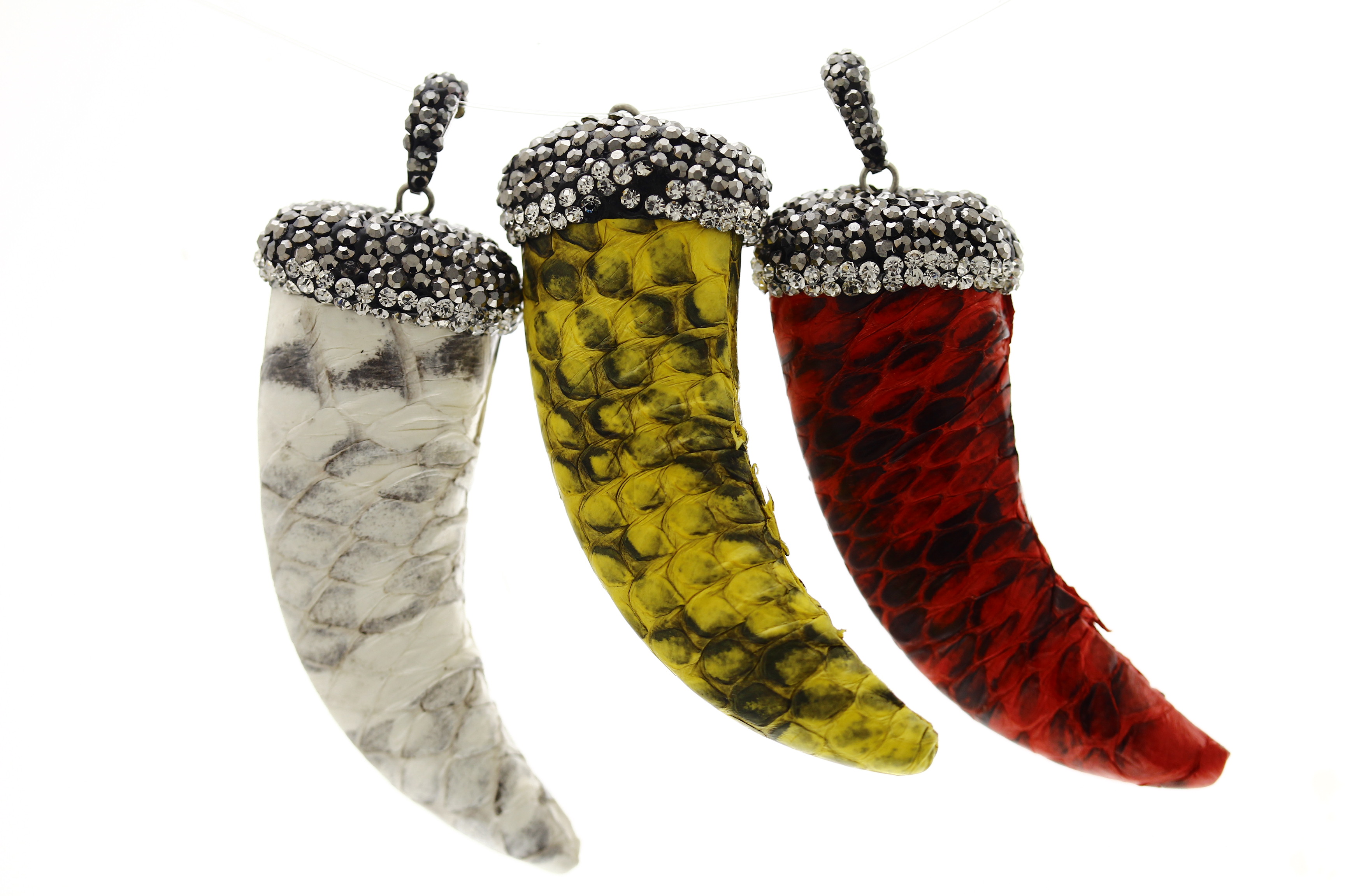 STAINLESS STEEL PENDANT OF STONE IN SHAPE TUSK IN 3 TONES WITH CRYSTAL BLACK & WHITE