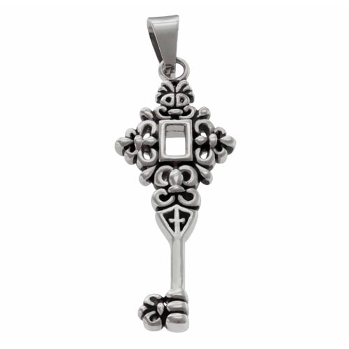 STAINLESS STEEL PENDANT WITH BLACK ENAMEL WITH KEY SHAPE