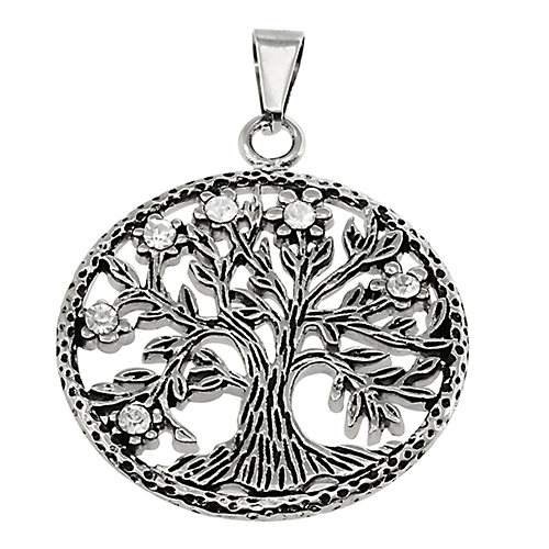 STAINLESS STEEL PENDANT WITH TREE OF LIFE ALL IN SS COLOR WITH WHITE STONES