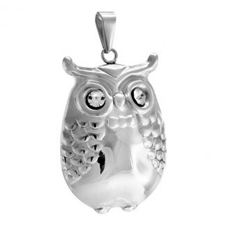 STAINLESS STEEL HOLLOW OWL PENDANT WITH WHITE&BLACK CZ