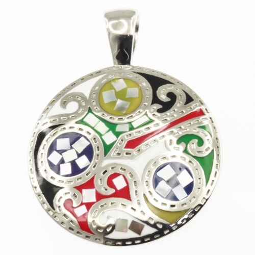 STAINLESS STEEL PENDANT WITH SHELLS AND ENAMELS