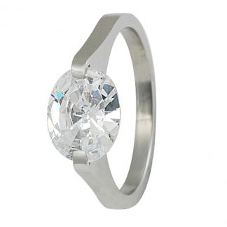 Stainless Steel Fashion Jewellery Ring with Oval CZ In Steel Color