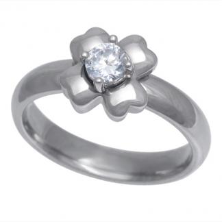 Stainless Steel Ring with Clover Shape with CZ All in Steel Color