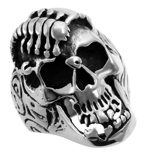 STAINLESS STEEL RING IN SHAPE OF SKULL IN ENAMEL BLACK ALL IN S/S.