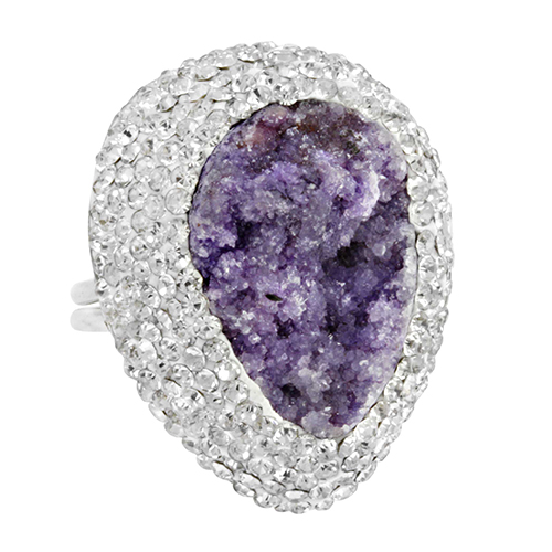 STAINLESS STEEL RING WITH NATURE STONE IN PURPLE COLOR & WHITE CRYSRAL