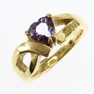 COPPER RING WITH ONE PURPLE STONE IN HEART SHAPE