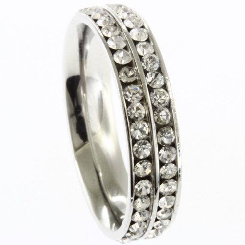 STAINLESS STEEL RING WITH 2 LINES OF WHITE CZ