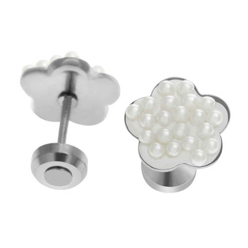 STAINLESS STEEL BABY EARRINGS ALL IN S/S COLOR IN FLOWER SHAPE WITH MICRO PEARL