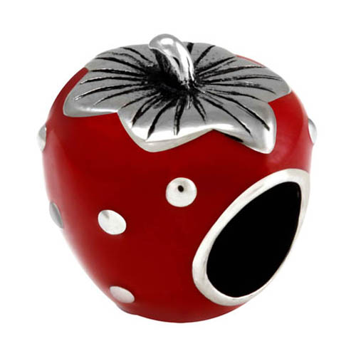STAINLESS STEEL BEAD IN STRAWBERRY SHAPE WITH RED ENAMEL ALL IN STEEL COLOR