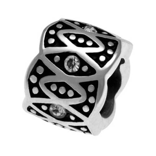 STAINLESS STEEL BEAD IN ROUND SHAPE WITH DIAMOND PATTERN WITH CZ WITH BLACK OIL PAINTING IN STEEL COLOR