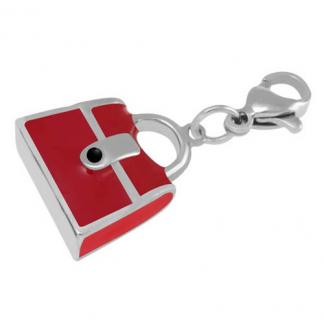 STAINLESS STEEL CHARMS IN HANDBAGS SHAPE ENAMEL RED & BLACK COLOR