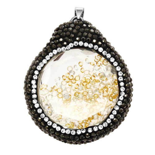STAINLESS STEEL PENDANT IN A CIRCULAR SHAPE SEA STONE SHAPE WITH BLACK & WHITE CRYSTAL ALL IN IPG