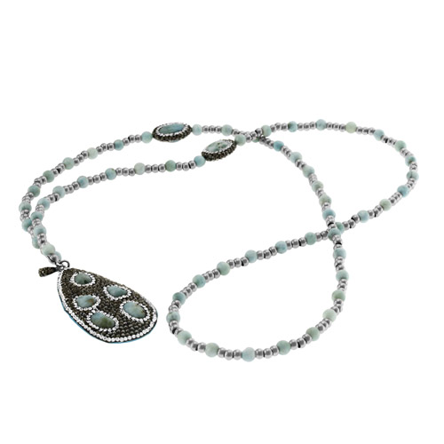 STAINLESS STEEL NECKLACEIN S/S COLOR WITH STONES TURQUOISE