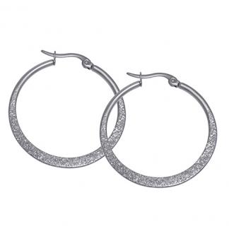 STAINLESS STEEL HOOP EARRING WITH FLAT BOTTOM WITH SANDBLAST ON BOTH SIDES ALL IN STEEL COLOR