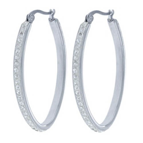STAINLESS STEEL EARRINGS IN CIRCLE SHAPE IN S/S COLOR WITH CZ