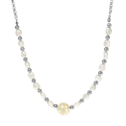 STAINLESS STEEL NECKLACE WITH 1 STONE WHITE AND PERLS ALL IN S/S COLOR