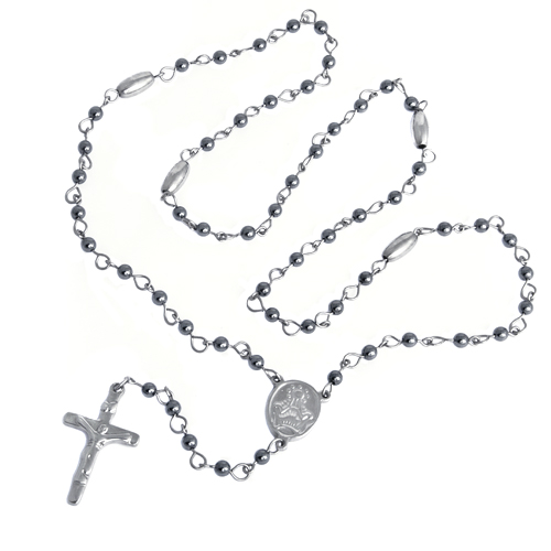 STAINLESS STEEL ROSARY WITH CROSS PENDANT (WITH HEMATITE BEADS)