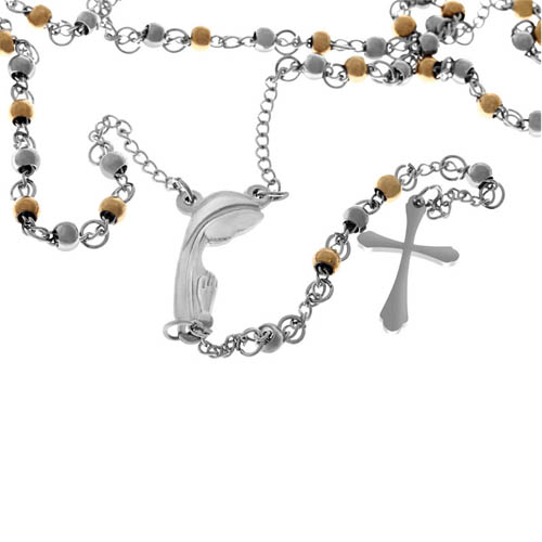 STAINLESS STEEL NECKLACE WITH CROSS AND ROSARY PENDANT WITH IPG TWO TONE |