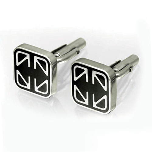STAINLESS STEEL CUFF LINK IN SQUARE SHAPEWITH BLACK ENAMEL ALL IN S/S COLOR