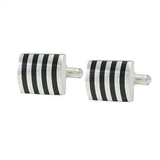 STAINLESS STEEL CUFF LINK IN RECTANGULAR SHAPE WITH BLACK ENAMEL IN S/S COLOR