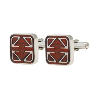 STAINLESS STEEL CUFF LINK IN SQUARE SHAPE WITH BROWN WOOD IN S/S COLOR