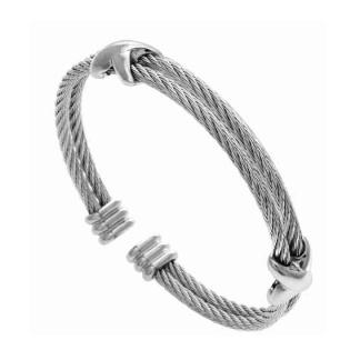 STAINLESS STEEL BANGLE IN 2 WIRES WITH 2 CROSS ALL IN STEEL COLOR