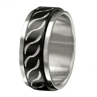 STAINLESS STEEL FASHION JEWELLERY RING WITH DIAMOND CUT IN IPB TWO TONES