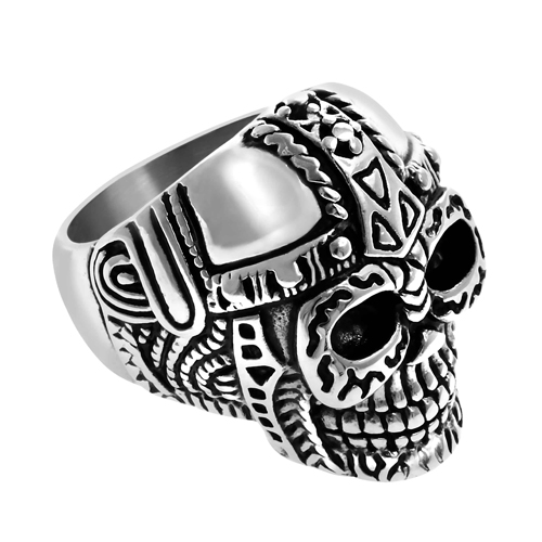 STAINLESS STEEL RING IN SHAPE OF SKULL IN S/S AND BLACK COLOR