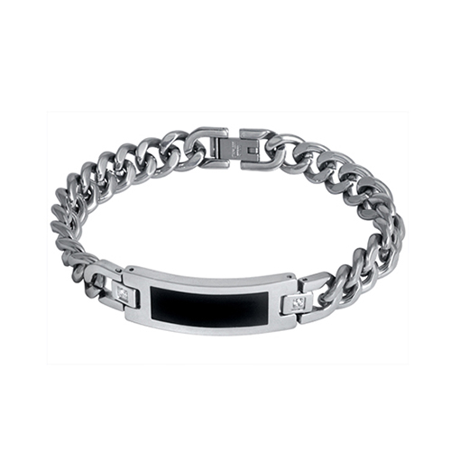 STAINLESS STEEL BRACELET WITH BLACK ENAMEL & CZ ON PLATE