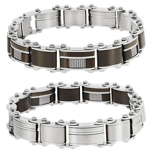 STAINLESS STEEL CHAIN AND LINK BRACELET IN IPG TWO TONE