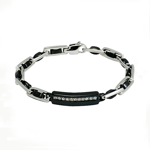 STAINLESS STEEL BRACELET IPB TWO TONE WITH 11PCS CZ (RAINBOW COLOR)