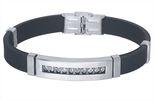 STAINLESS STEEL BRACELET IN PU WITH 10 PCS OF CZ